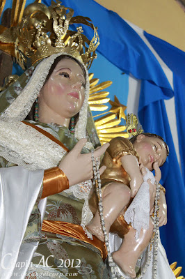 El altar de la festividad fue complementado con gran cantidad de arreglos florales, en donde sobresalió la flor más hermosa: Nuestra Señora del Rosario, con el bello niño dormido en sus brazos.