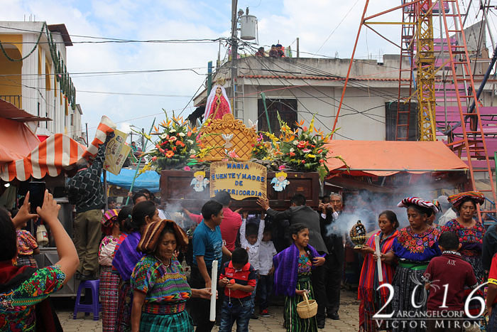 La Aldea Santa María Cauqué celebró este día su feria patronal, y entre las actividades religiosas llevadas a cabo no podía faltar la solemne procesión en honor a la Virgen María de la Asunción, la cual dio inicio a eso de las 8:00 horas para realizar su recorrido por calles de dicho lugar, retornando a su templo alrededor de las 11:30 horas. Al frente del andas se apreció un letrero con la frase: "María Fuente y Madre de Misericordia".