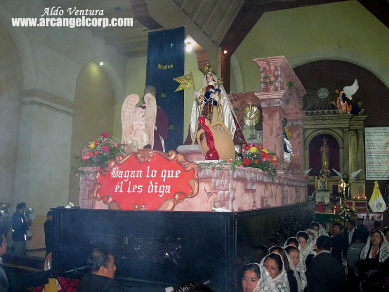 El mensaje del andas que portaba a Nuestra Madre la Virgen del Rosario fue:” Hagan lo que él les diga”. El solemne rezado ingresó al templo alrededor de las 10 de la noche.