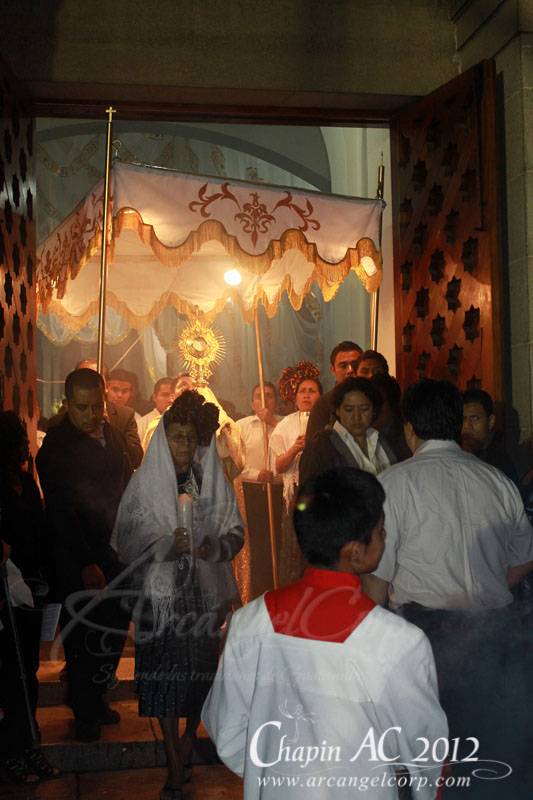 Al finalizar la misma se llevó a cabo una majestuosa y solemne procesión con el Santísimo Sacramento del Altar por los alrededores de la parroquia, luego de concluida se procedió a la quema de juegos pirotécnicos dentro de los cuales destacaron los 3 toritos traídos de San Raymundo especialmente para esta festividad.